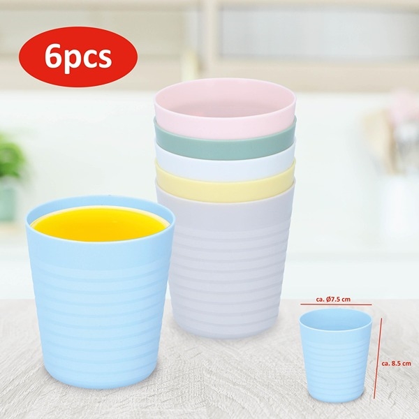 Här får du 6 st. praktiska plastmuggar som är enkla att använda i vardagen och perfekta att ta med på utflykten. Muggarna är tillverkade i slitstark plast och fungerar utmärkt som små muggar, både för kalla och varma drycker. Med en höjd på ca 8,5 cm och en diameter på ca 7,5 cm är de lätta att hålla i handen, vilket gör dem idealiska som muggar för barn, men även perfekta som plastmuggar för picnic och camping.