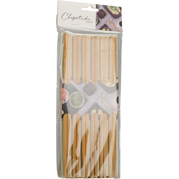 Detta set innehåller 12 par bambus ätpinnar med en slät yta och en fyrkantig form med runda hörn som säkerställer ett bra grepp. De är perfekta för både daglig användning och speciella tillfällen. Observera att de inte bör diskas i diskmaskin.