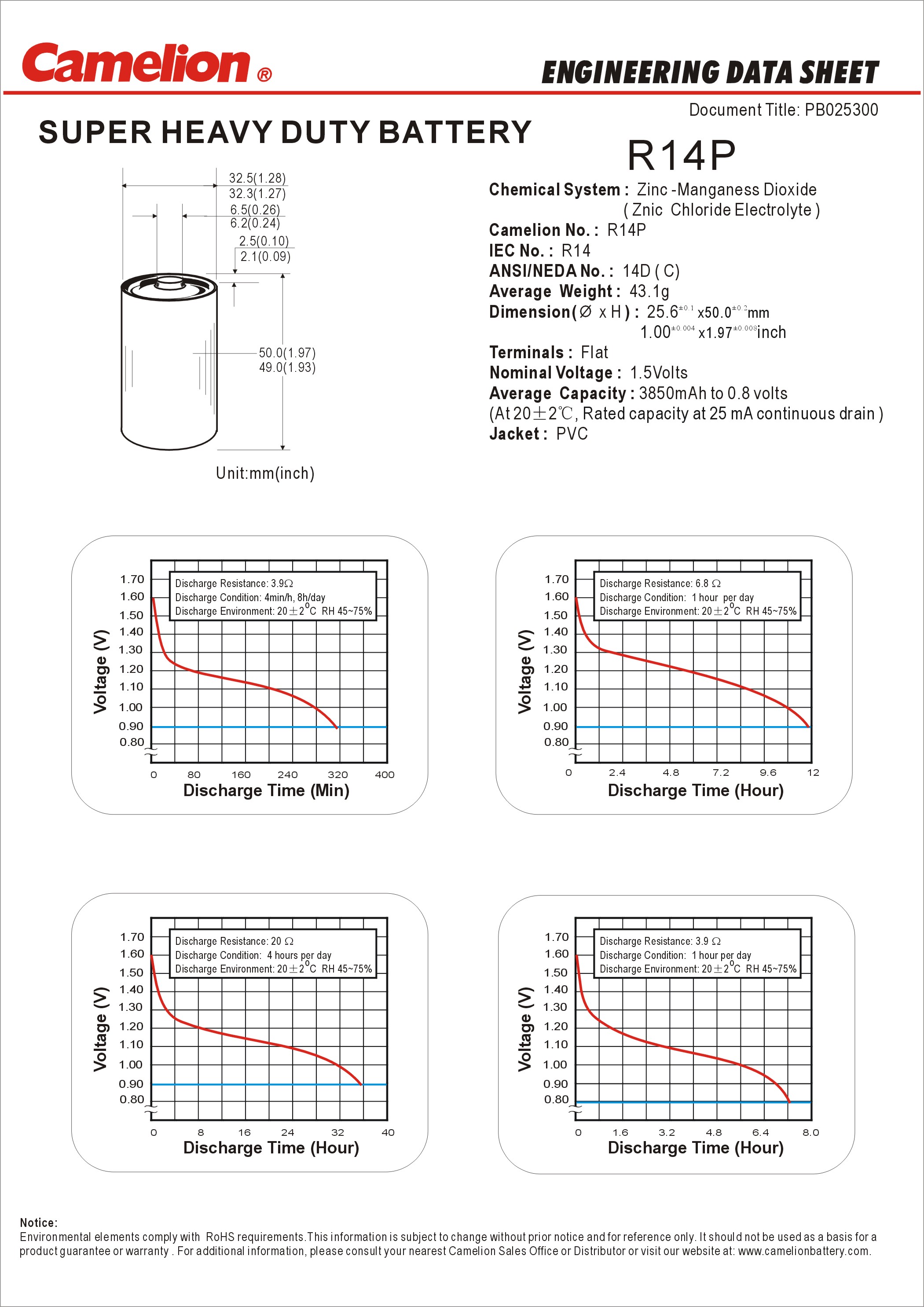 Andre betegnelser for dette batteri: R14 / C / Baby