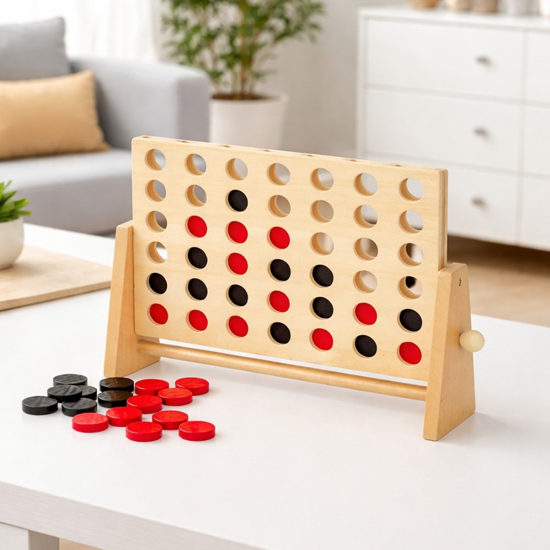 Klassiskt fyra i rad i trä för hela familjen