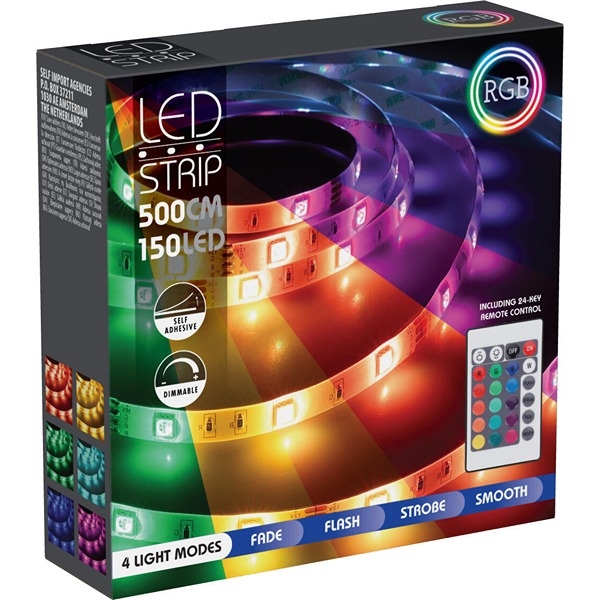 Produkt:  LED Band 5 m 150 LED med Fjärrkontroll - Självhäftande och Klippbar