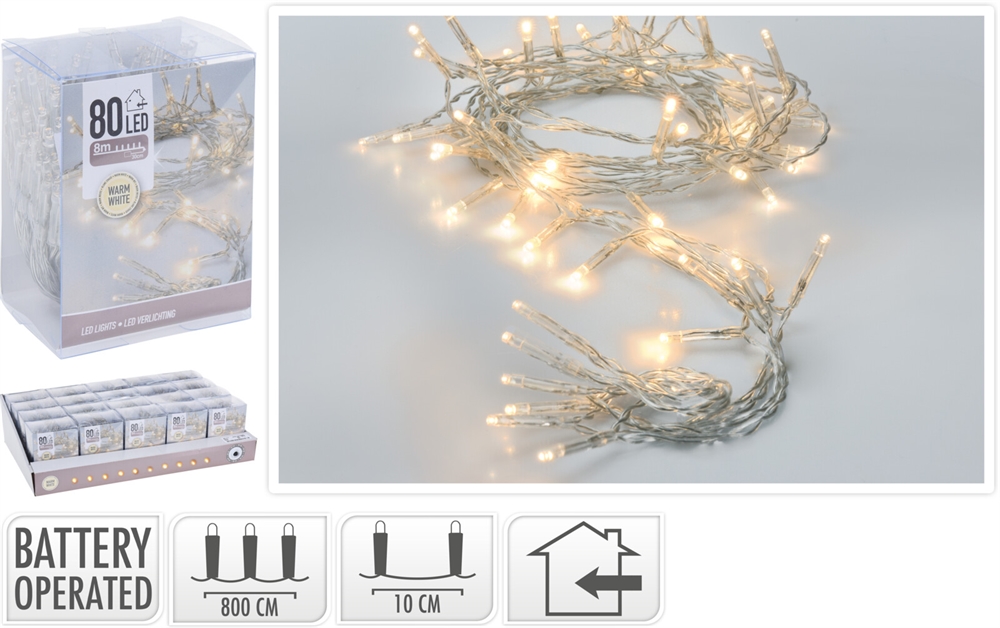 LED-ljusslinga med 80 LED-lampor i varmt, vitt ljus (8m)