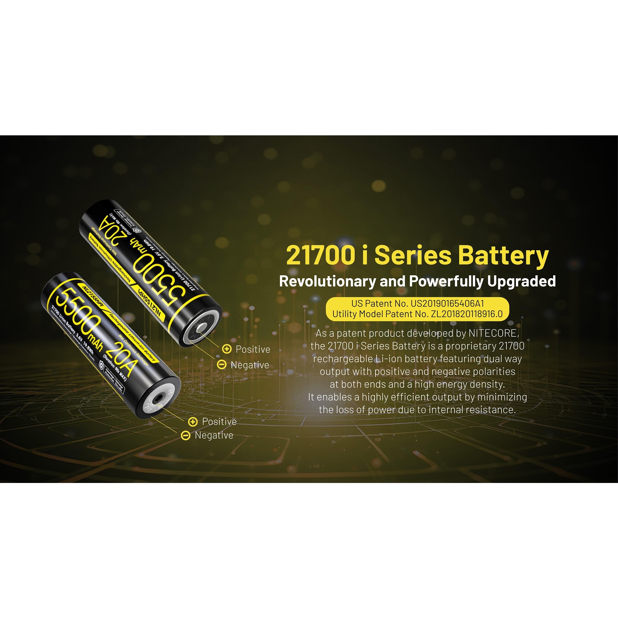 Det som är speciellt med Nitecore NL2155HPi är den patenterade i Series-konstruktionen, där batteriet är uppbyggt med både positiv och negativ pol integrerad i båda ändar. Det skiljer sig från traditionella 21700-batterier och gör strömöverföringen mer effektiv. Det interna motståndet minskar, energiförlusten reduceras och resultatet blir en mer stabil och kraftfull prestanda i kompatibla Nitecore-ficklampor som till exempel P23i och P20iX