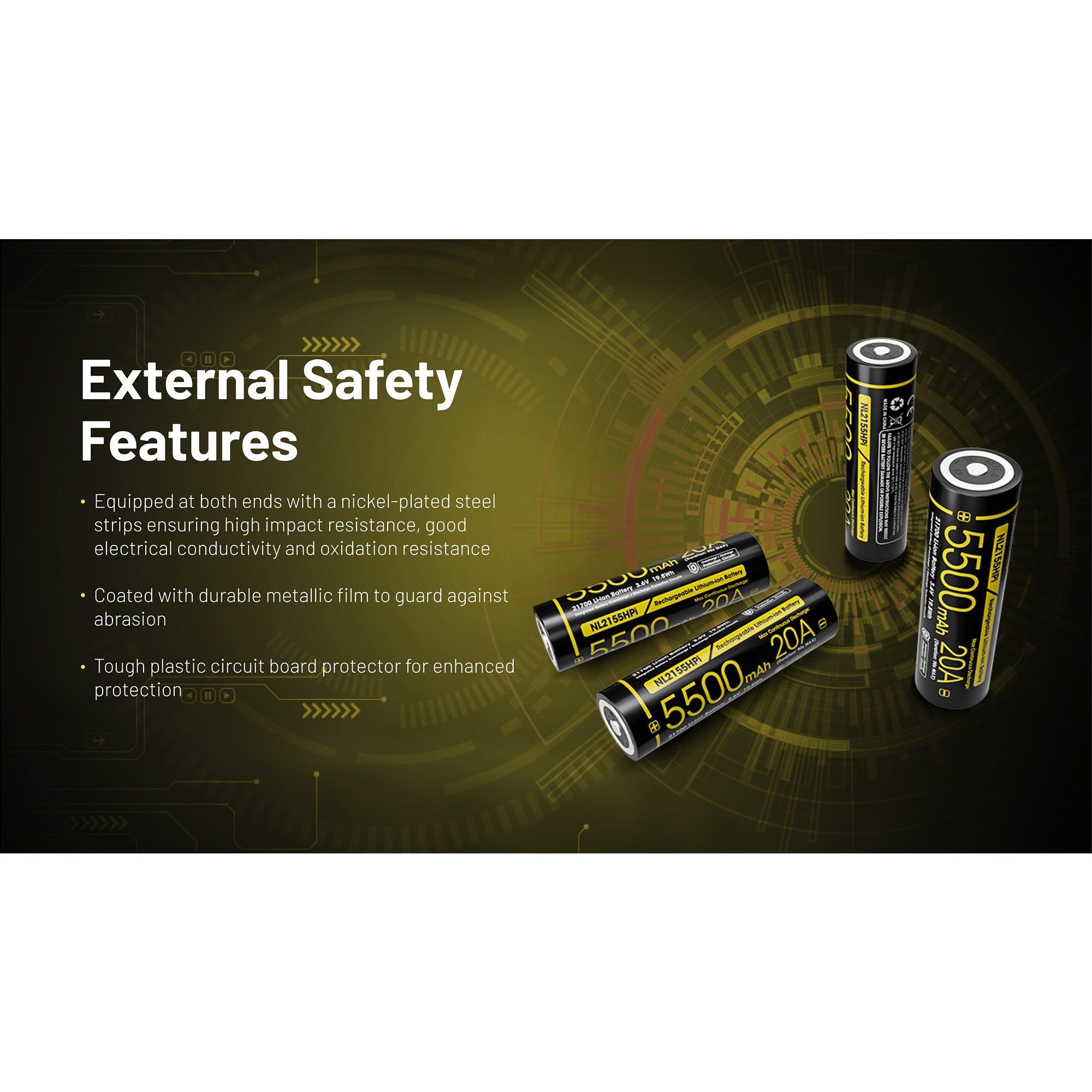 • 5.500 mAh kapacitet ger lång drifttid i kompatibla Nitecore-ficklampor