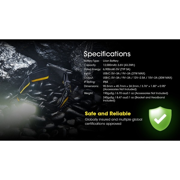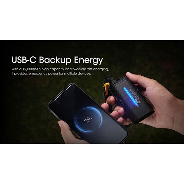 Få maximal flexibilitet med NITECORE Carbon Battery™ 12K, ett batterikit med 12.000 mAh kapacitet och en vikt på bara 240 g. Powerbanken levereras med ett bekvämt pannband så att du enkelt kan montera din pannlampa på pannbandet.