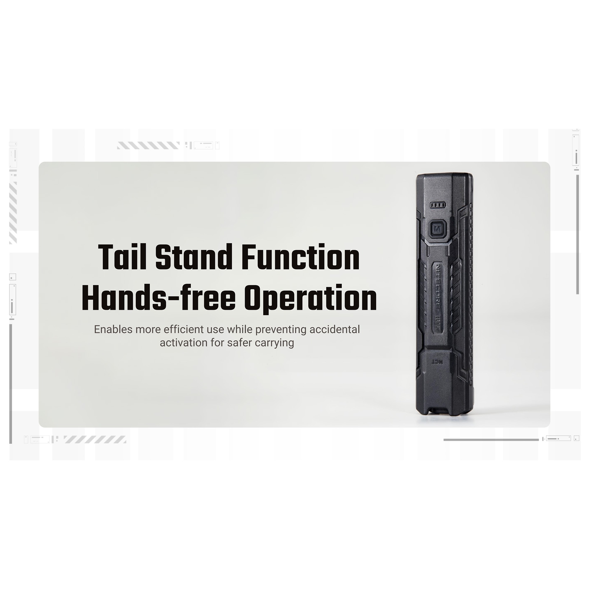 Nitecore-ficklampan med platt bakände gör att den kan stå upprätt och användas handsfree. Det texturerade greppet, det lätta höljet i high-performance PC och klämman i rostfritt stål stödjer en praktisk och realistisk användning både i arbete och på fritiden. Med upp till 360 timmars drifttid, fem ljusnivåer samt STROBE och SOS är den redo när du behöver en kompakt men seriös ljuskälla.