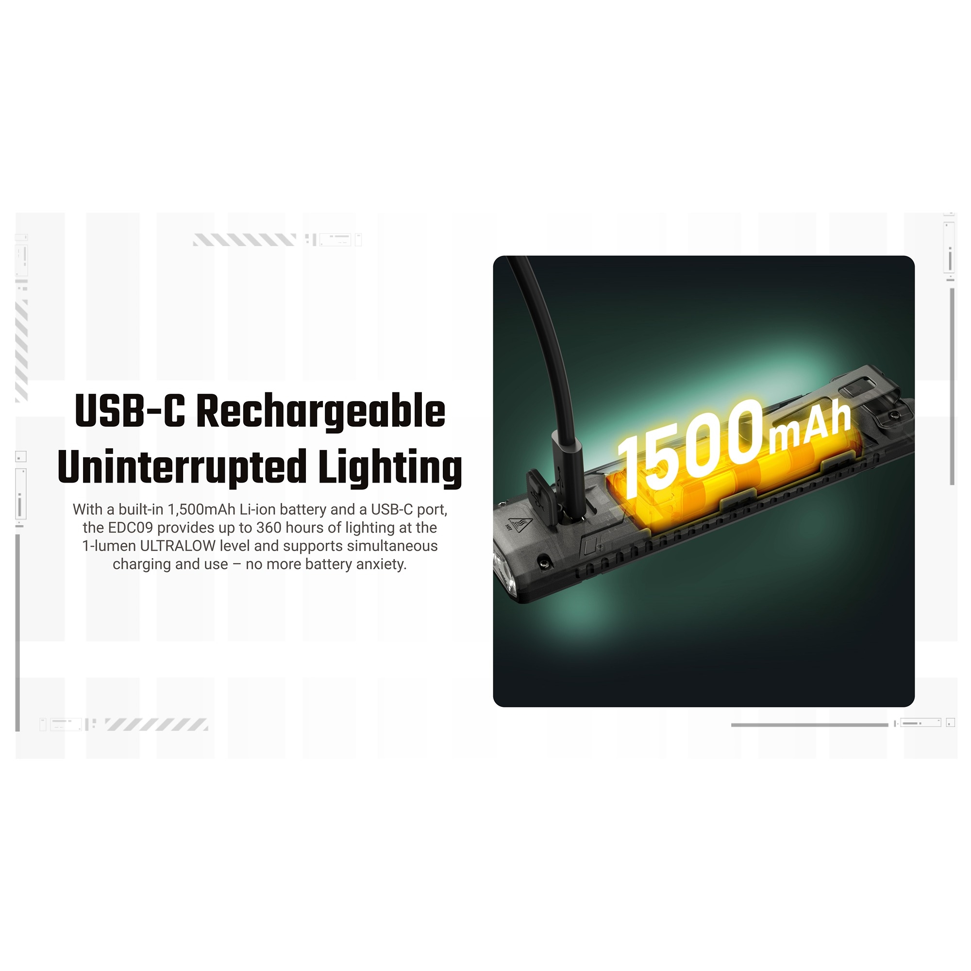 Kvik-købNitecore EDC07 Uppladdningsbar ficklampa 1500 lumen, Svart