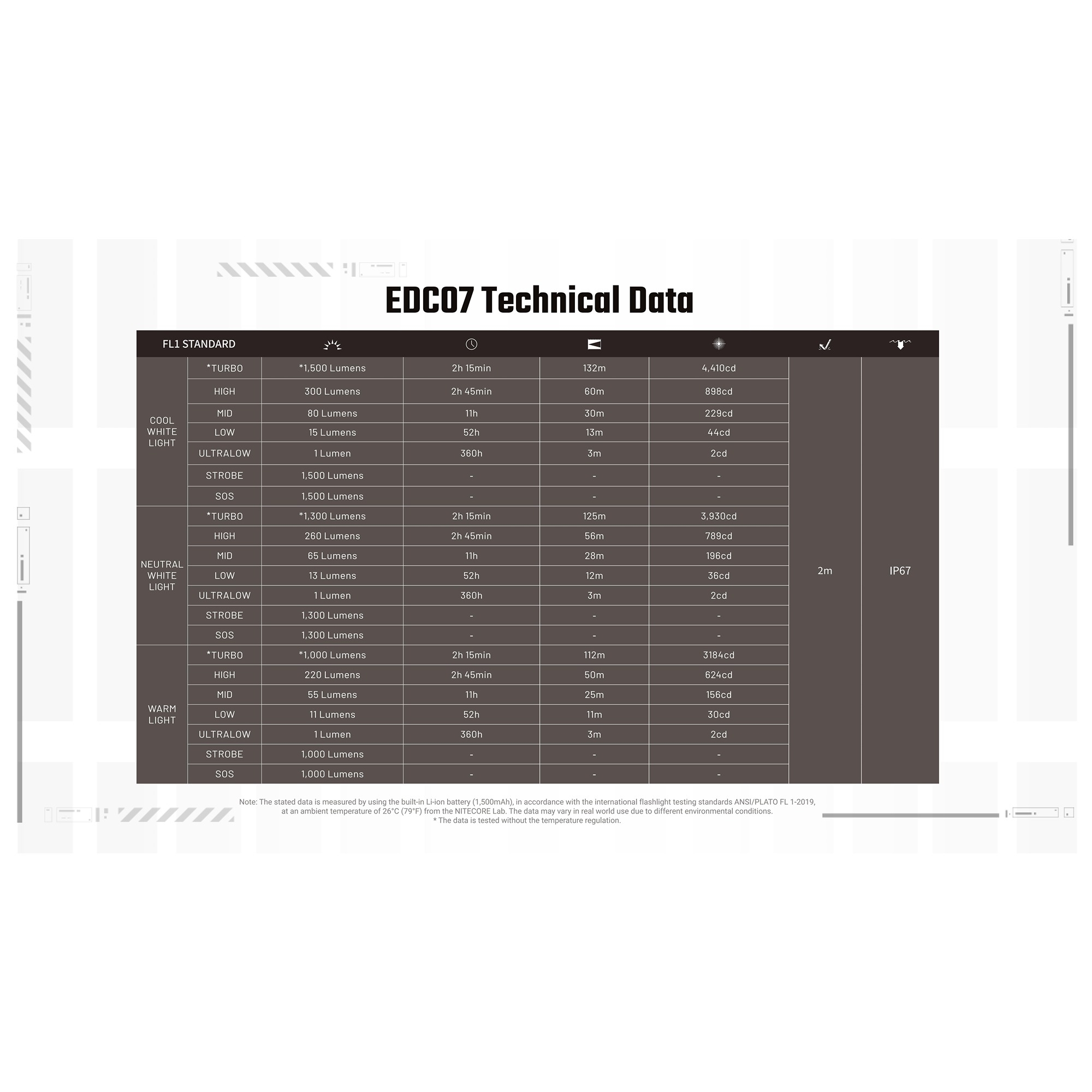 Nitecore EDC07 Uppladdningsbar Ficklampa 1500 lumen,