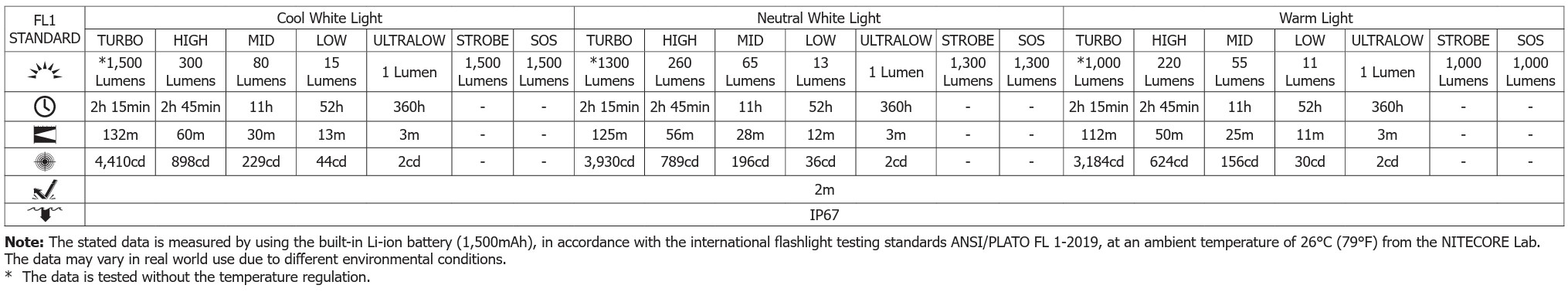 Drifttid vid högsta ljusstyrka (Kallvit/1500 lumen): 2 timmar och 15 min
