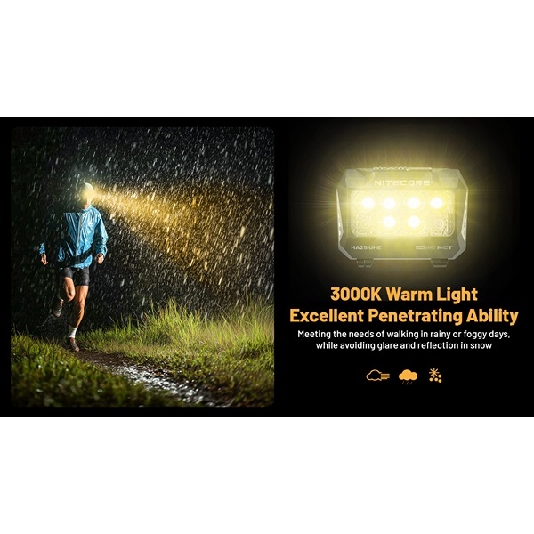Pannlampan använder Nitecores MCT UHE LED-teknologi med 3 färgtemperaturer: