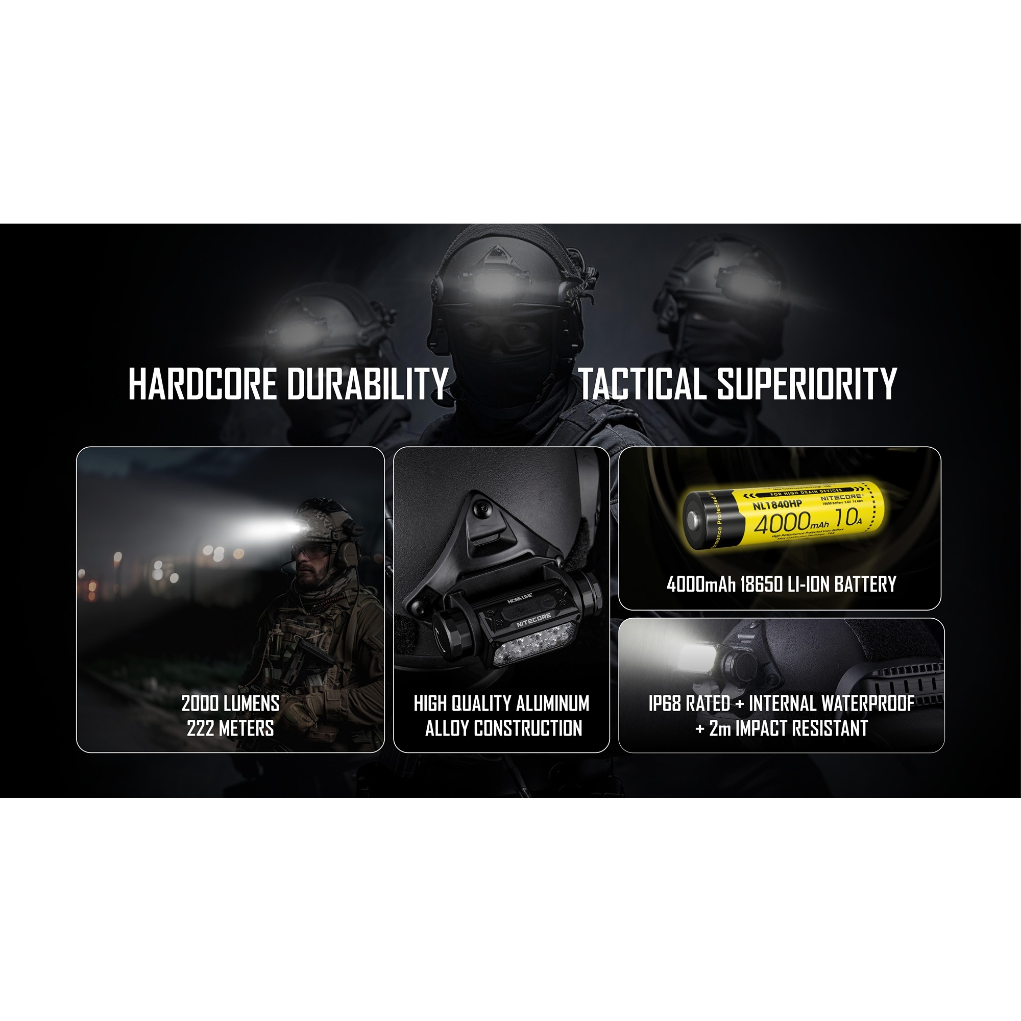 Nitecore HC65M UHE – taktisk pannlampa för NVG-fäste