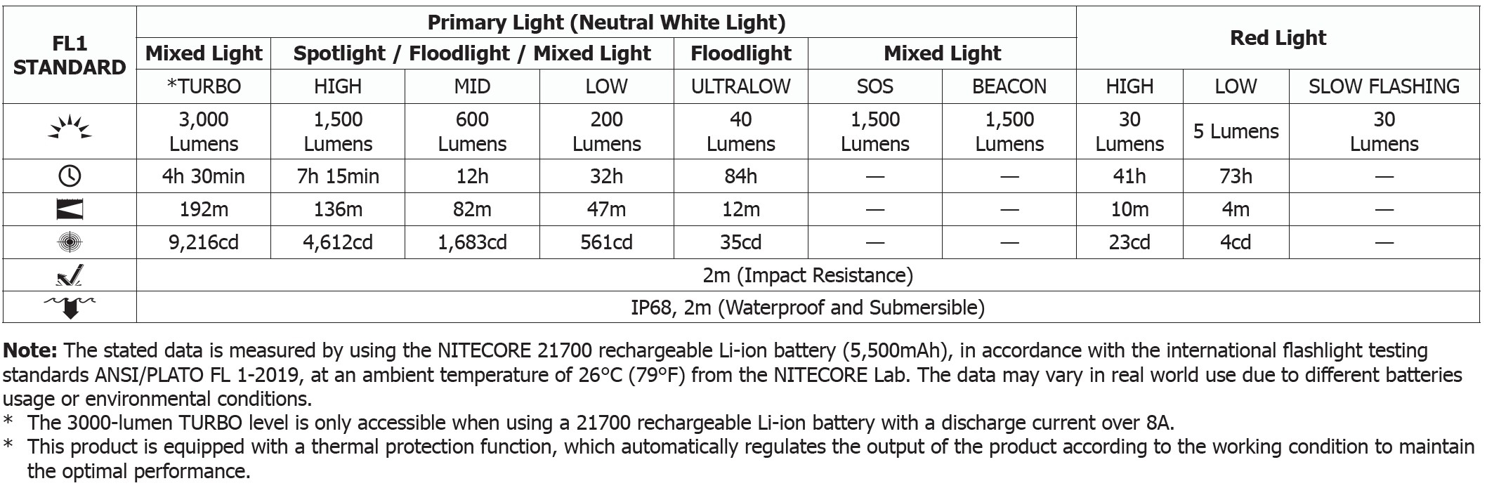 • Uttagbart 21700-batteri (Nitecore NL2155HP)
