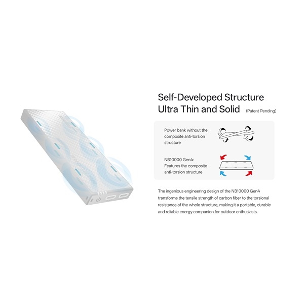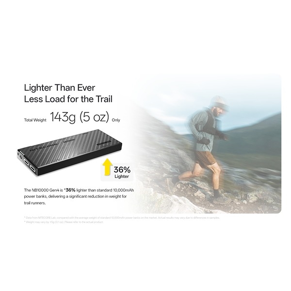 NB10000 Gen4 är en lätt och ultra-slim USB-C powerbank på 10.000 mAh, utvecklad för dig som önskar hög prestanda, låg vikt och pålitlig laddning. Den är idealisk som powerbank för resor, utomhusaktiviteter, pendling och daglig användning, där kompakt storlek och snabb laddning är avgörande. Powerbanken mäter 116 × 46,8 × 14,5 mm och väger endast 143 gram, vilket gör den enkel att ha med sig i fickan eller väskan.
