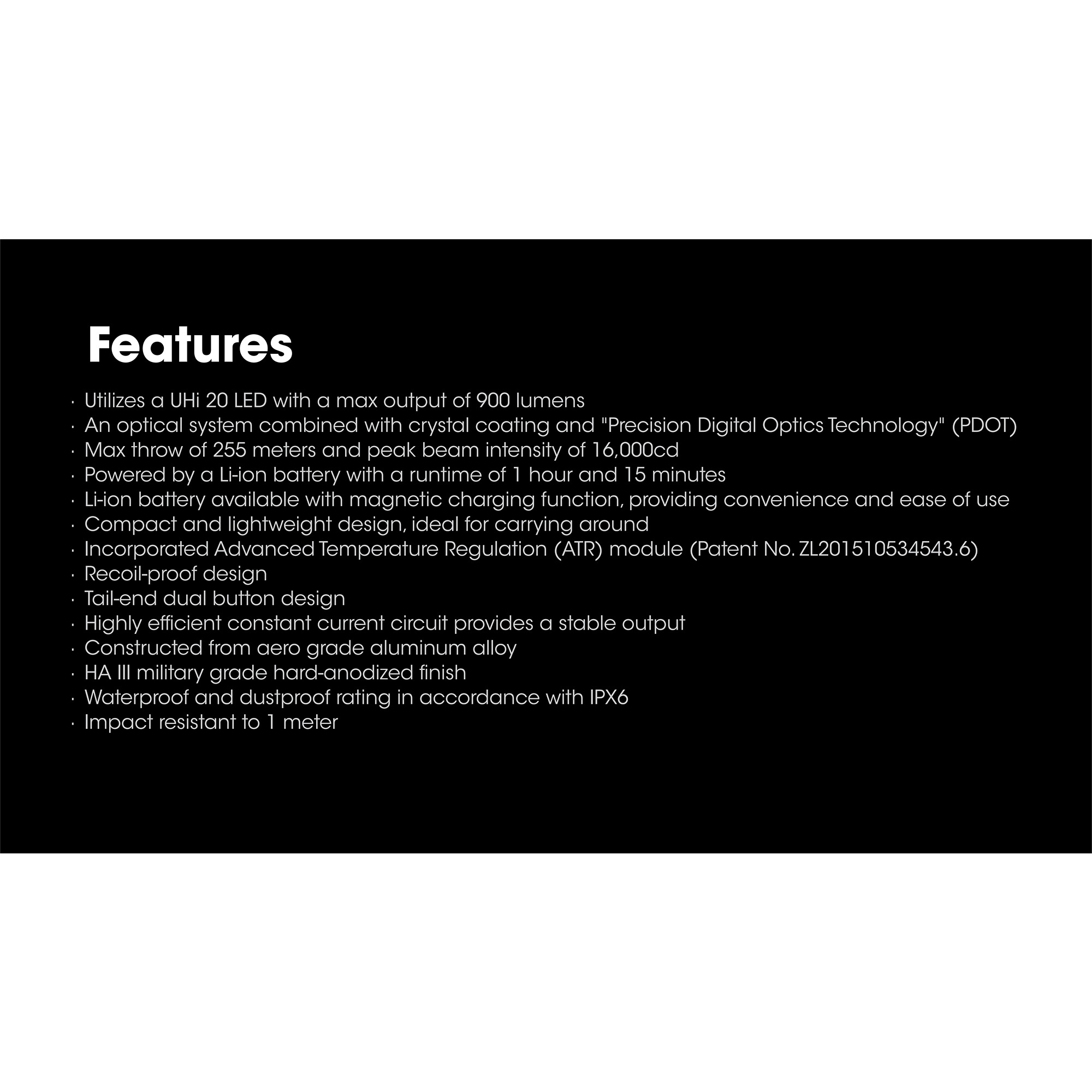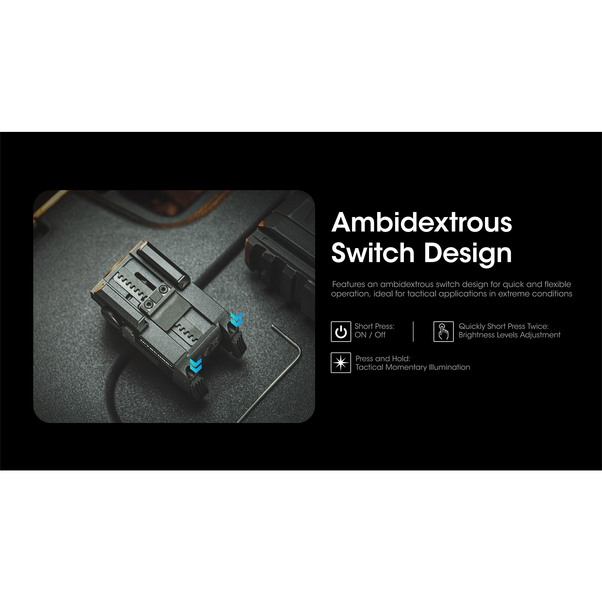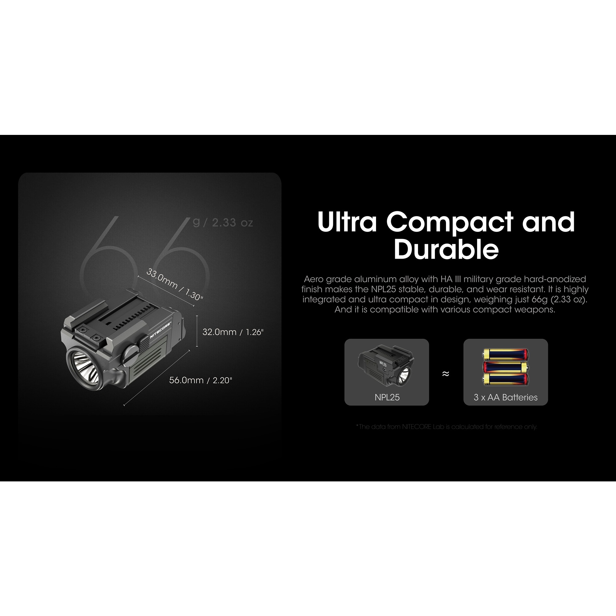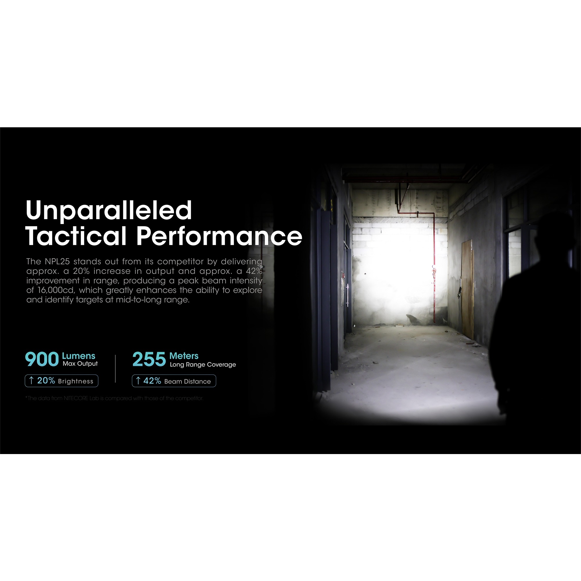 Nitecore NPL25 är en kompakt och uppladdningsbar vapenlampa som passar dig som vill ha ett kraftfullt vapenljus i ett lågt och diskret format. Med upp till 900 lumen får du ett klart och användbart ljus som ger bra överblick i mörka miljöer. Det gör Nitecore NPL25 till ett självklart val för dig som vill ha en praktisk och driftsäker Nitecore vapenlampa för träning, professionell användning eller annan krävande användning.