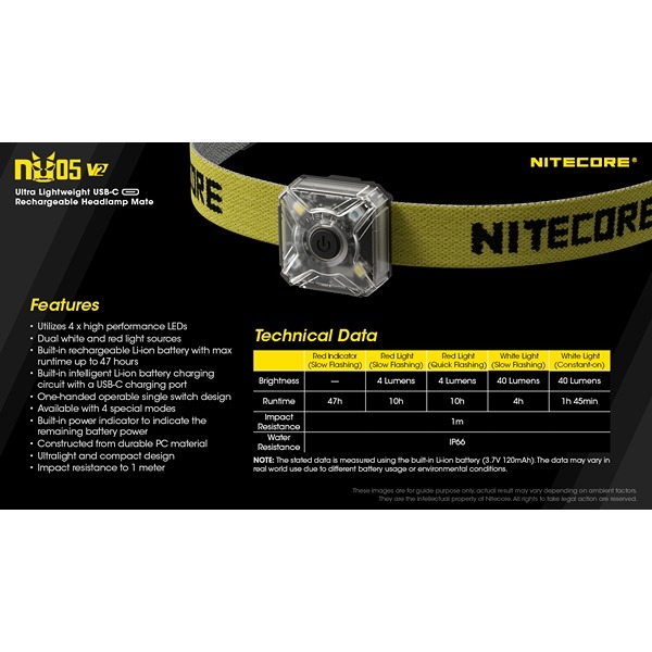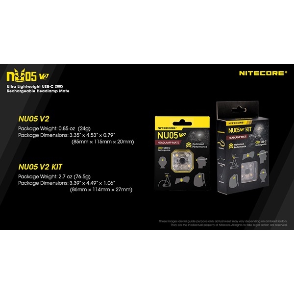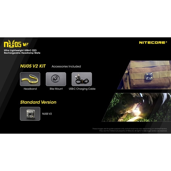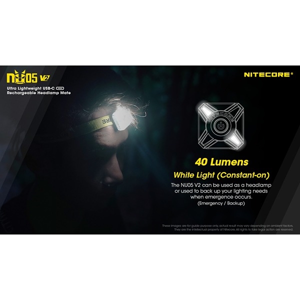 Produkt:  Nitecore NU05 V2 KIT Uppladdningsbar Lampa för bl.a. Ryggsäck och Cykel, Inkl. Tillbehör
