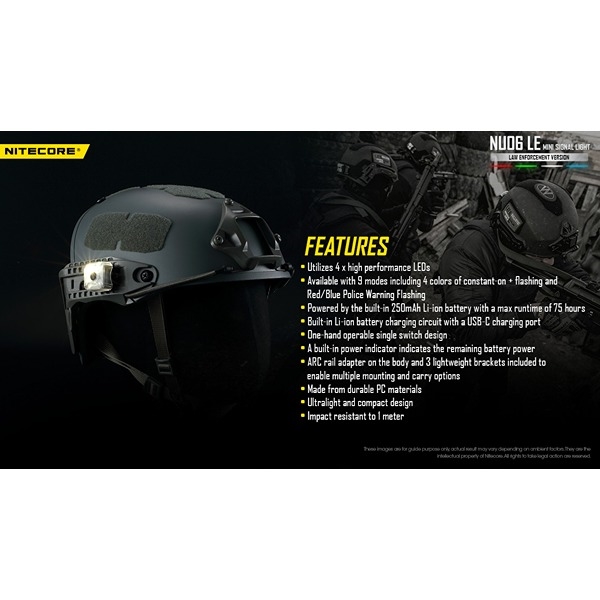 Produkt:  Nitecore NU06 LE Multifunktionell Signallampa för bl.a. Hjälm och Ryggsäck