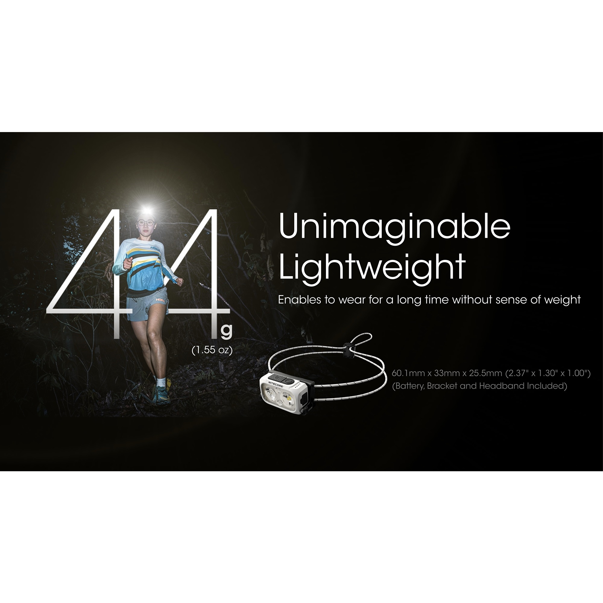 Den låga vikten och kompakta konstruktionen gör Nitecore NU21 särskilt lämplig för löpning och snabba aktiviteter. Lampenheten sitter nära och stabilt mot pannan, vilket minskar rörelse under löpning. Det elastiska och andningsbara pannbandet bidrar till hög komfort, även vid längre tids användning. Pannbandet är designat med två runda elastiska band och har reflexdetaljer samt självlysande element, så att du syns i mörkret hela tiden.