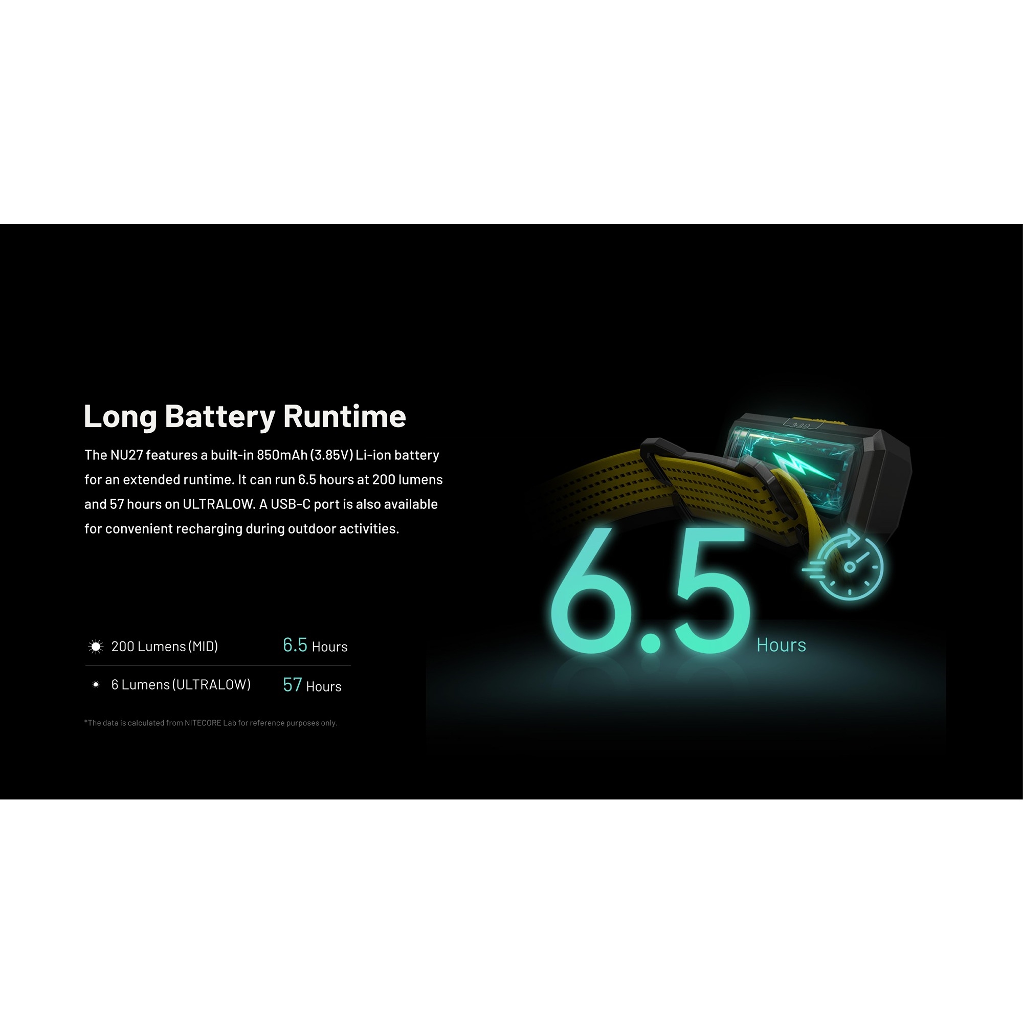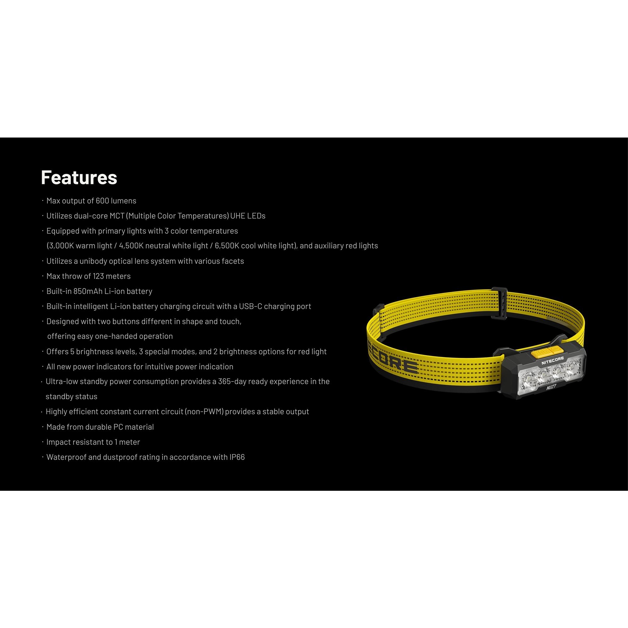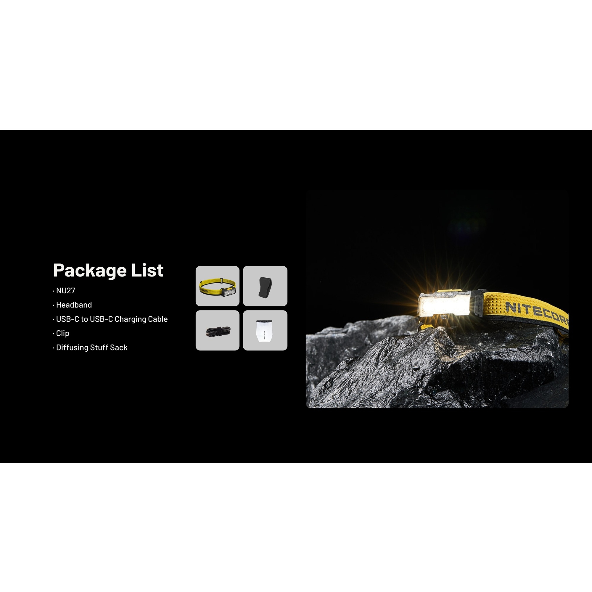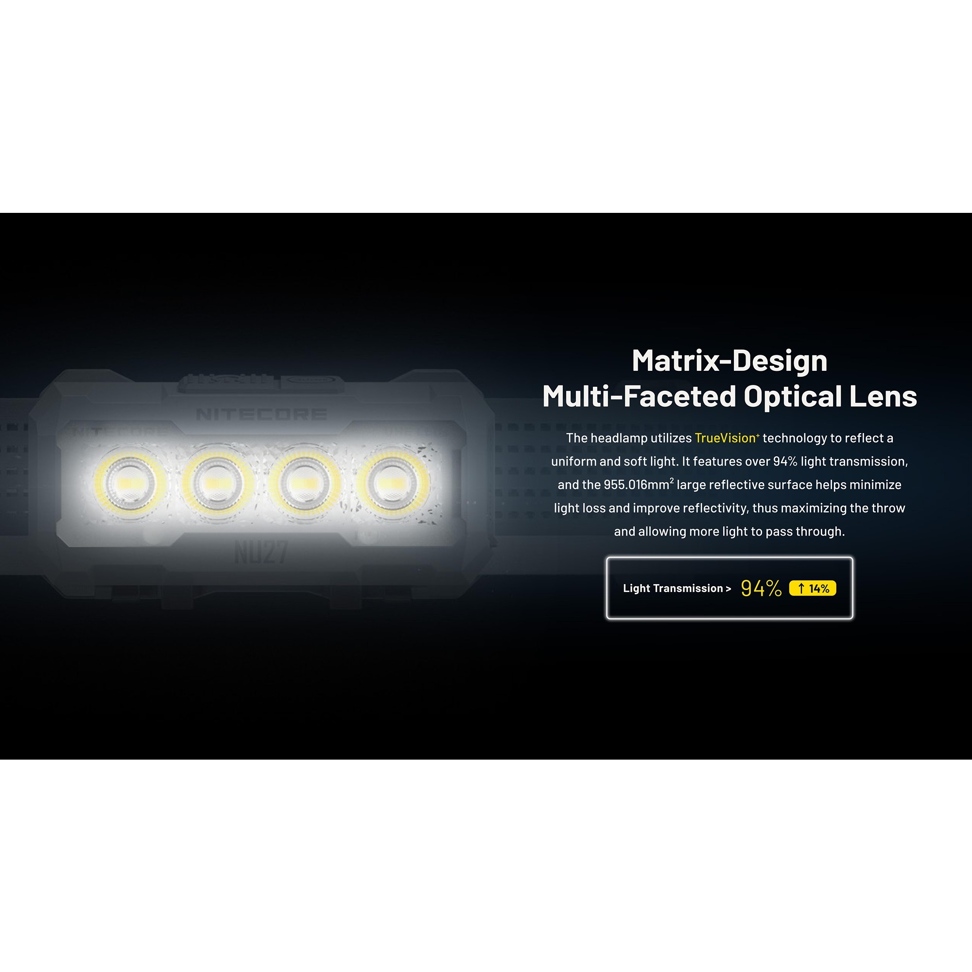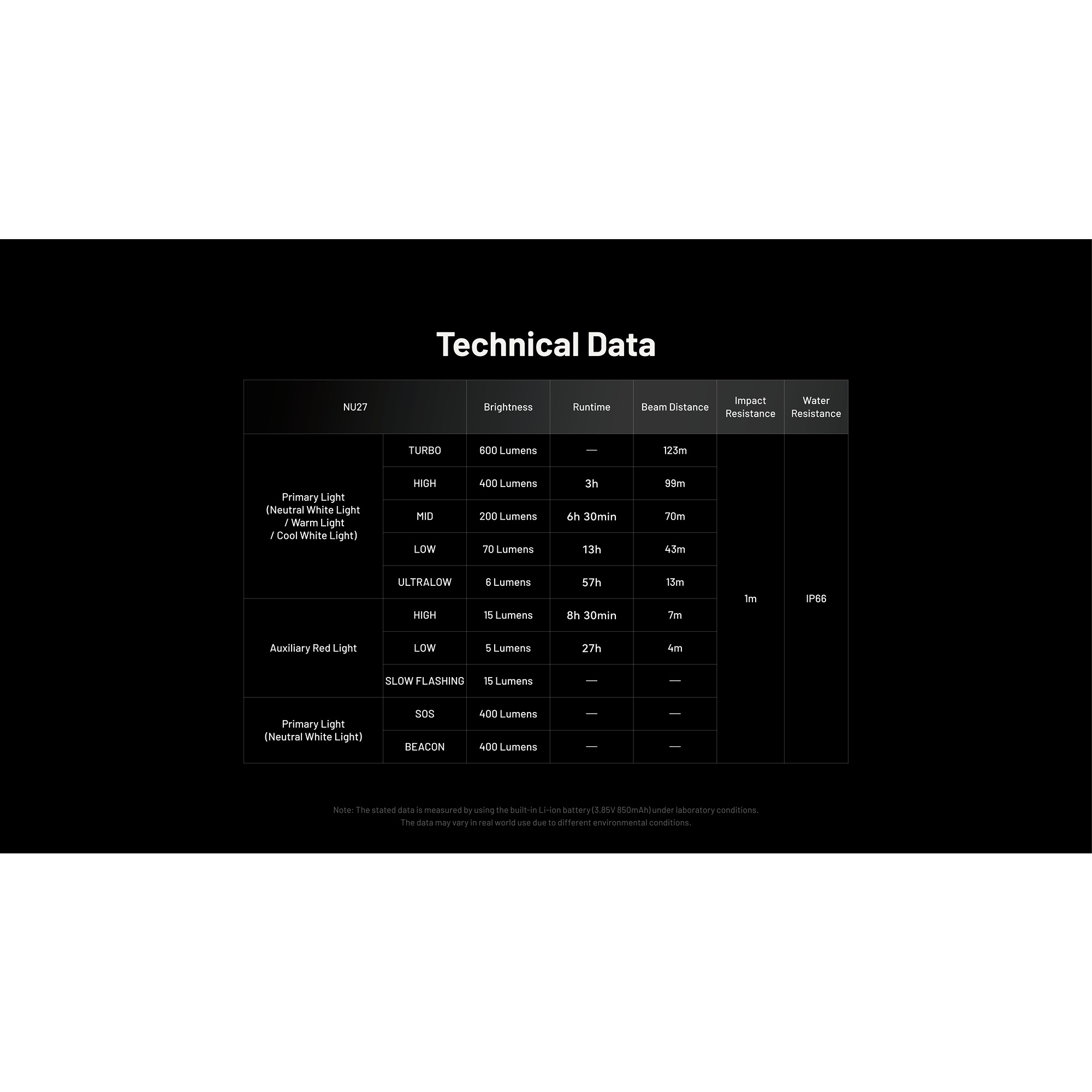 Produkt:  Nitecore NU27 MCT Uppladdningsbar Pannlampa 600 lumen, Vit