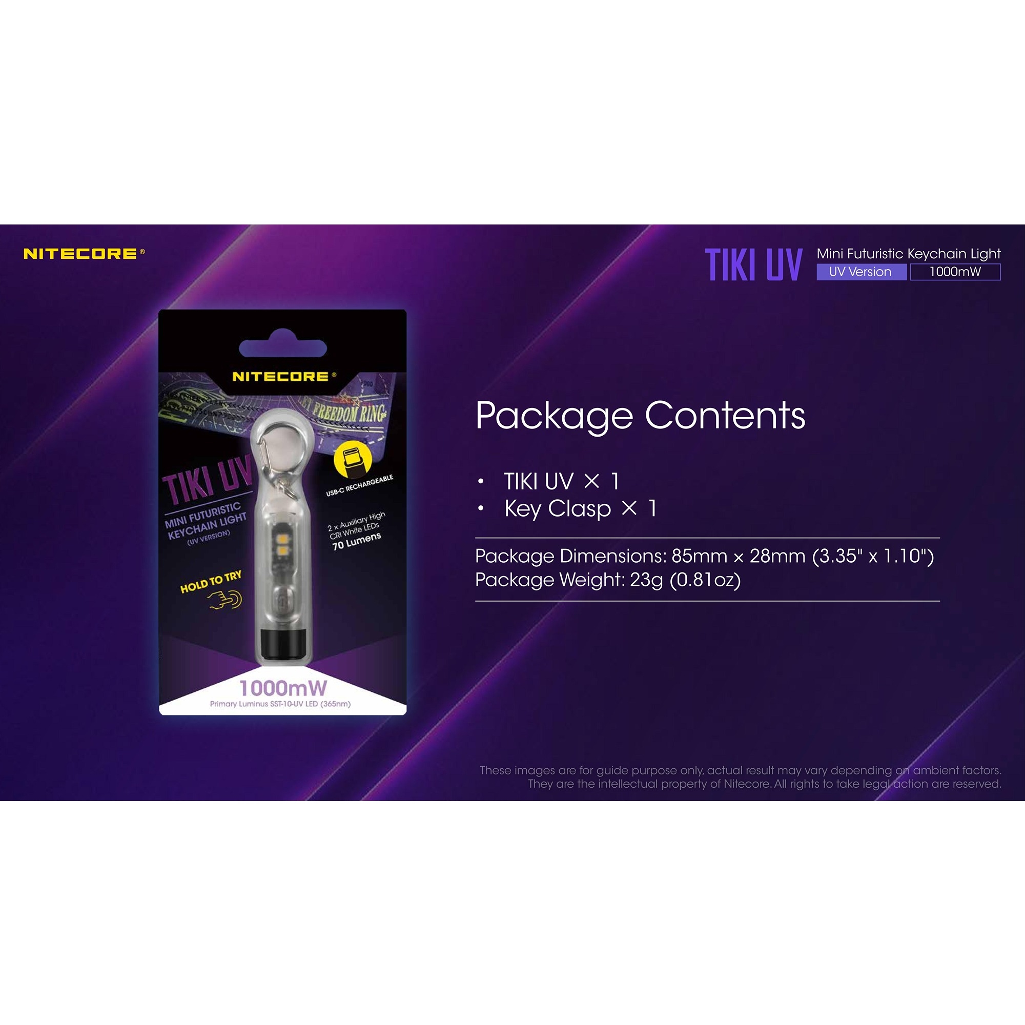 Nitecore TIKI UV Uppladdningsbar Nyckelringslampa med UV-ljus 70 lumen
