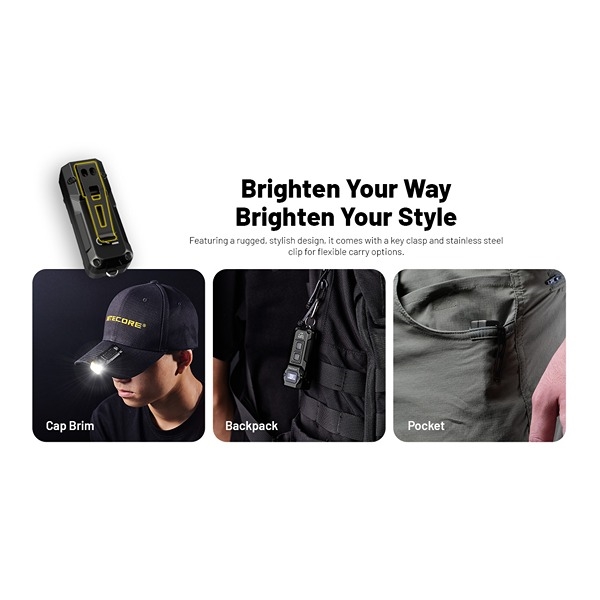 TUP2 är IP54-certifierad, slagtålig upp till 2 meter och utrustad med en metallkrok som kan bära upp till 30 kg. Med det medföljande stålklippet kan den fästas på keps, väska eller ficka, och med nyckelringen kan du alltid ha den med dig på språng. En idealisk följeslagare för friluftsliv, arbete, camping och dagligt bruk.