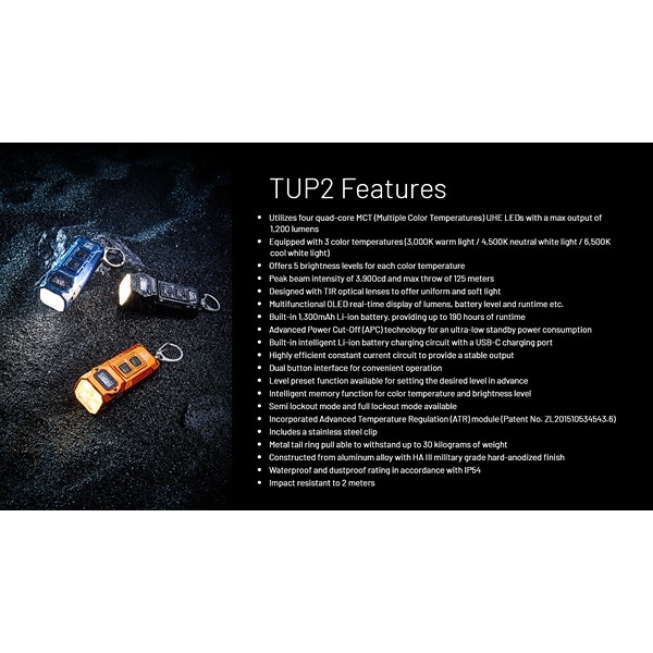 Produkt:  Nitecore TUP2 Uppladdningsbar LED-ficklampa 1200 Lumen, Orange