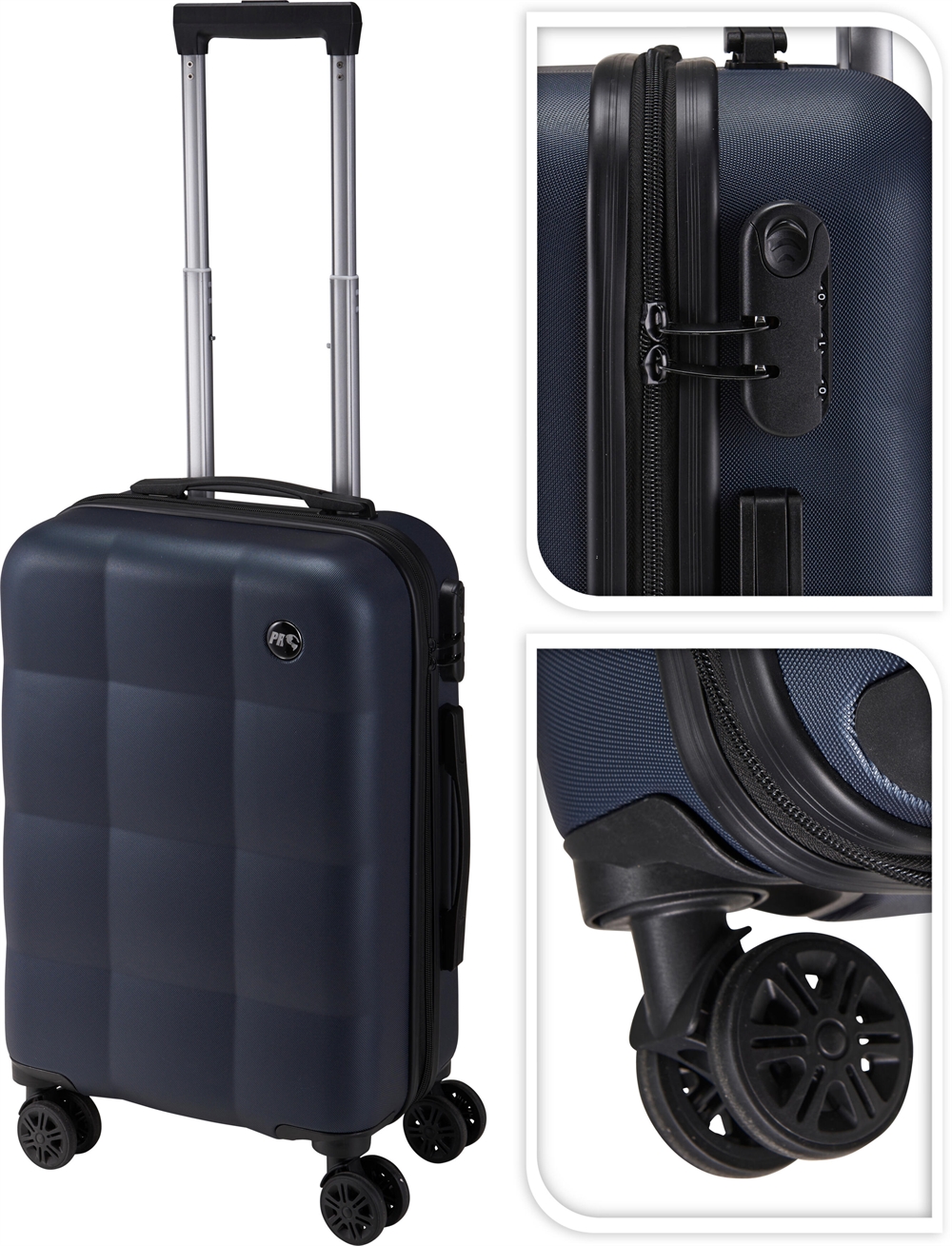 Denna praktiska kabinväskan från Pro World på 38 liter är idealisk som handbagage för både flygresor och weekendresor. Den blå hardcase-väskan kombinerar modern design med funktionalitet och slitstarka material. Med 4 roterande 360° hjul och ett justerbart teleskophandtag kan du enkelt navigera genom flygplatser och stadsmiljöer, medan det inbyggda kombinationslåset skyddar dina tillhörigheter under resan.