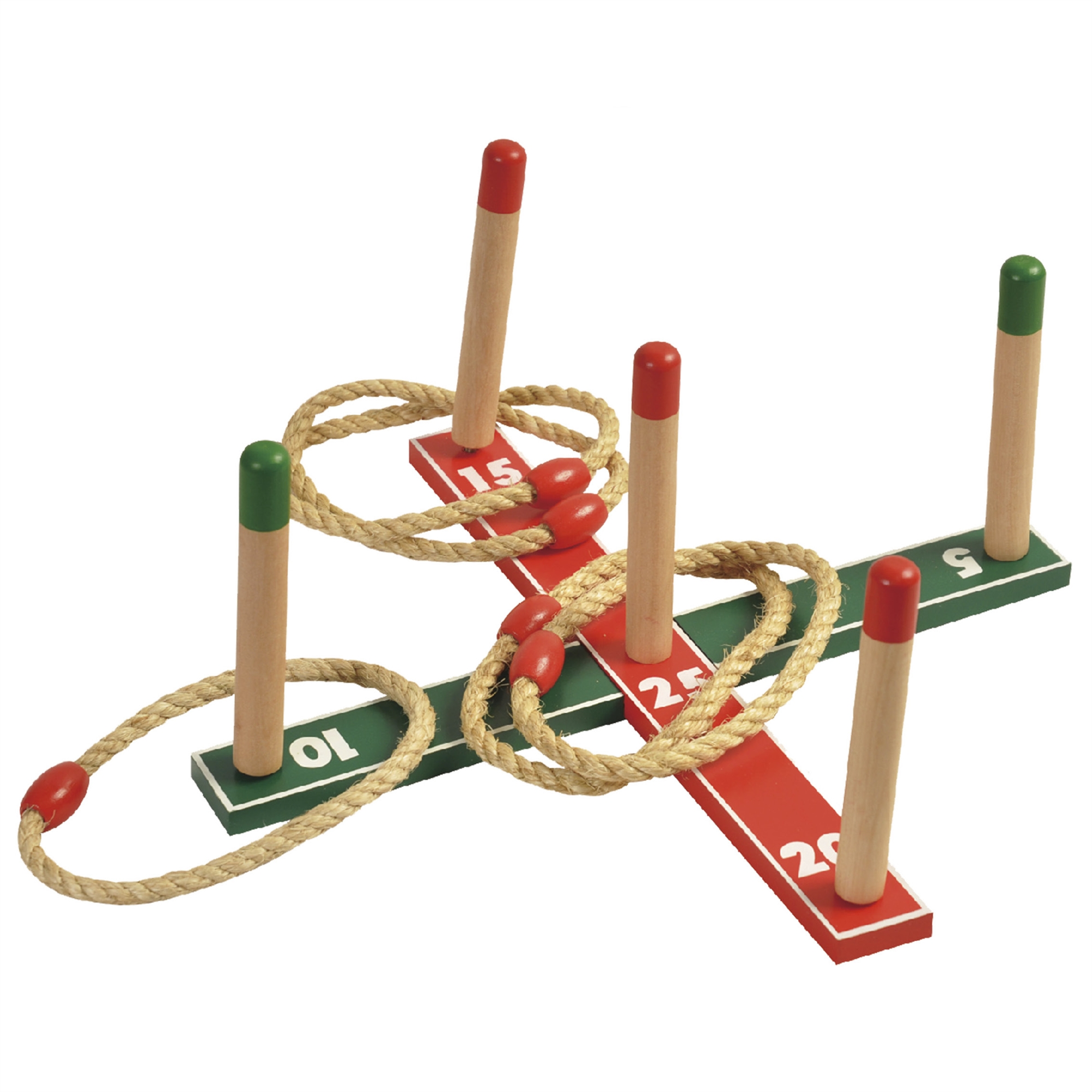Ringkast i trä med 5 rep-ringar 40x40 cm trädgårdsspel, Röd/Grön