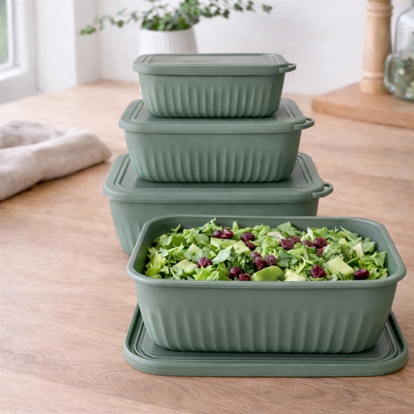 Skålset med lock i rektangulär form 4 st. i plast, grön