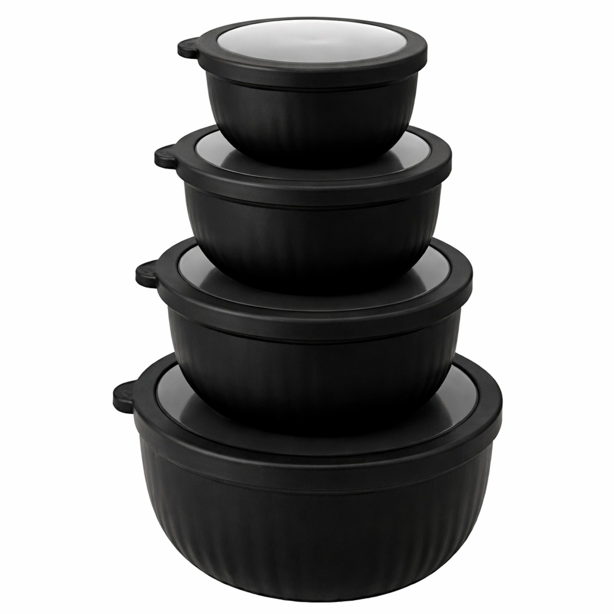 Skålset med lock i rund form 4 st. i plast, svart