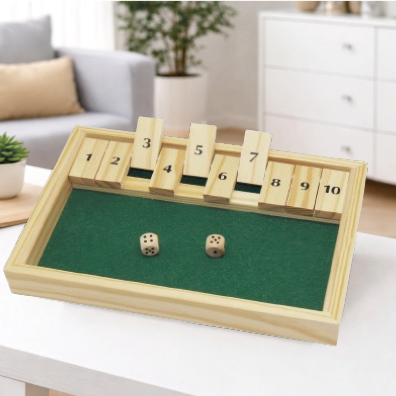 Shut the Box träspel med siffror 1-10 och tärningar